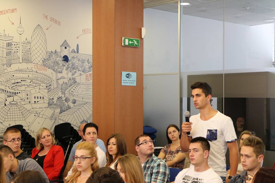 On Thursday, June 30, 2016, they had an opportunity to participate in Erasmus+ program promotion organized by EU Info Center in Sarajevo. The aim of the promotion was to inform students what can they expect at other universities inside EU. During the promotion, following persons addressed the students: Lars-Gunnar Wigemark, chief of EU Delegation in B&H and special representative of EU, Helene Skikos, European Commission Coordinator for education and culture for West Balkan region and Berina Šabanović, representative of Erasmus Students Network.
