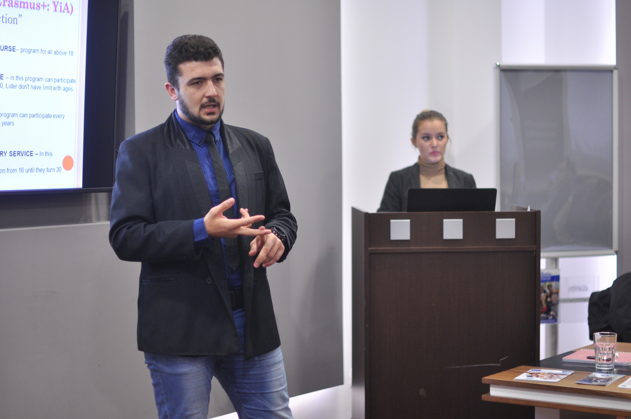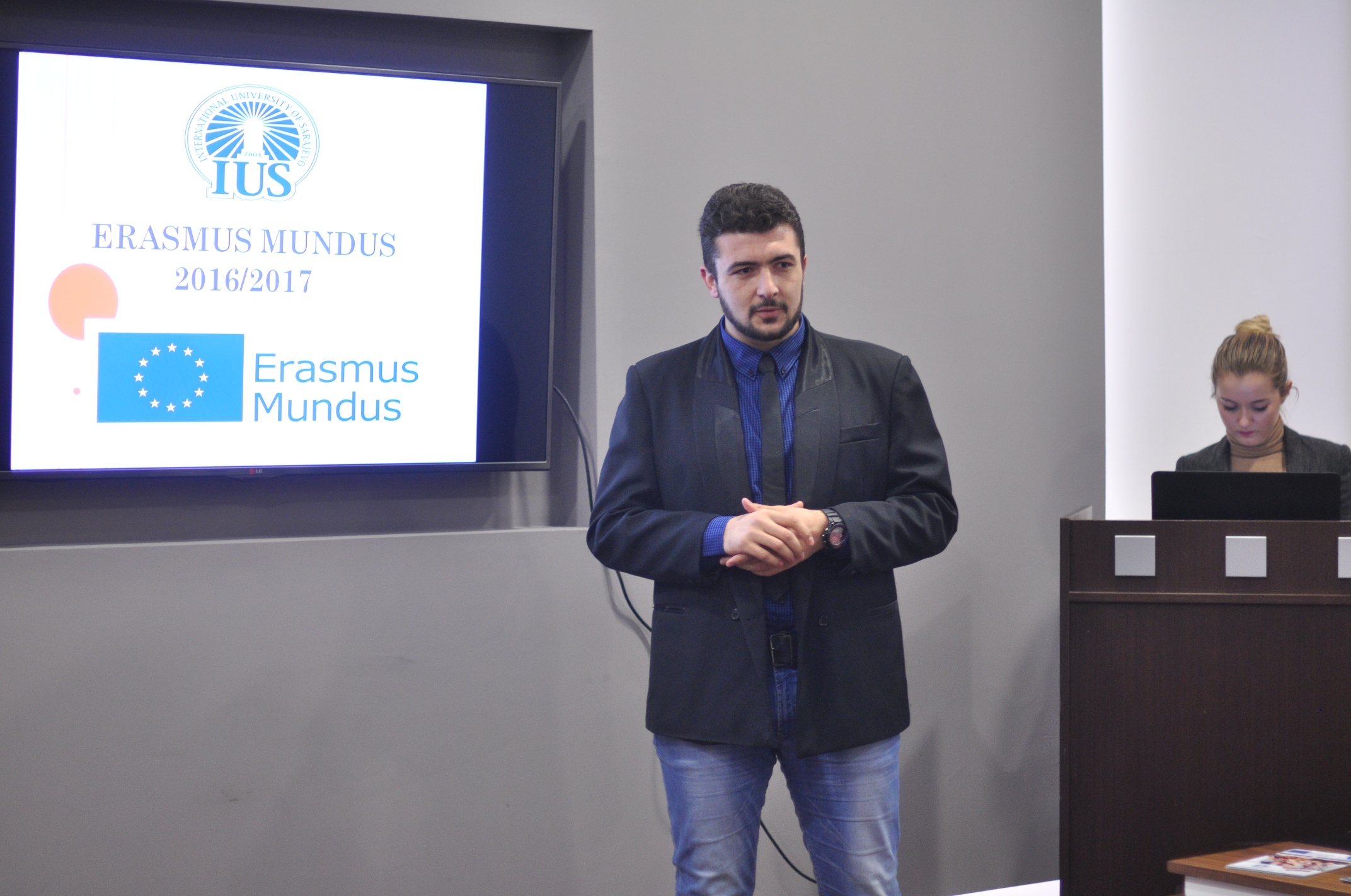 Due to great interest in Erasmus exchange programs and new calls offered, International Relations Office of the IUS organized a lecture for students and academic staff of the university on December 24, 2015. The guest speaker was Ismail Šehić, leader of the coordination team of European programs for youth as well as student at the University of Sarajevo and activist of Erasmus+ program and training. Ismail Šehić, along with International Relations Office (IRO) assistant, Emina Bašić presented the four new projects of Erasmus Mundus, at which an opportunity is given to students and staff for exchange at 32 universities from 12 EU member states.