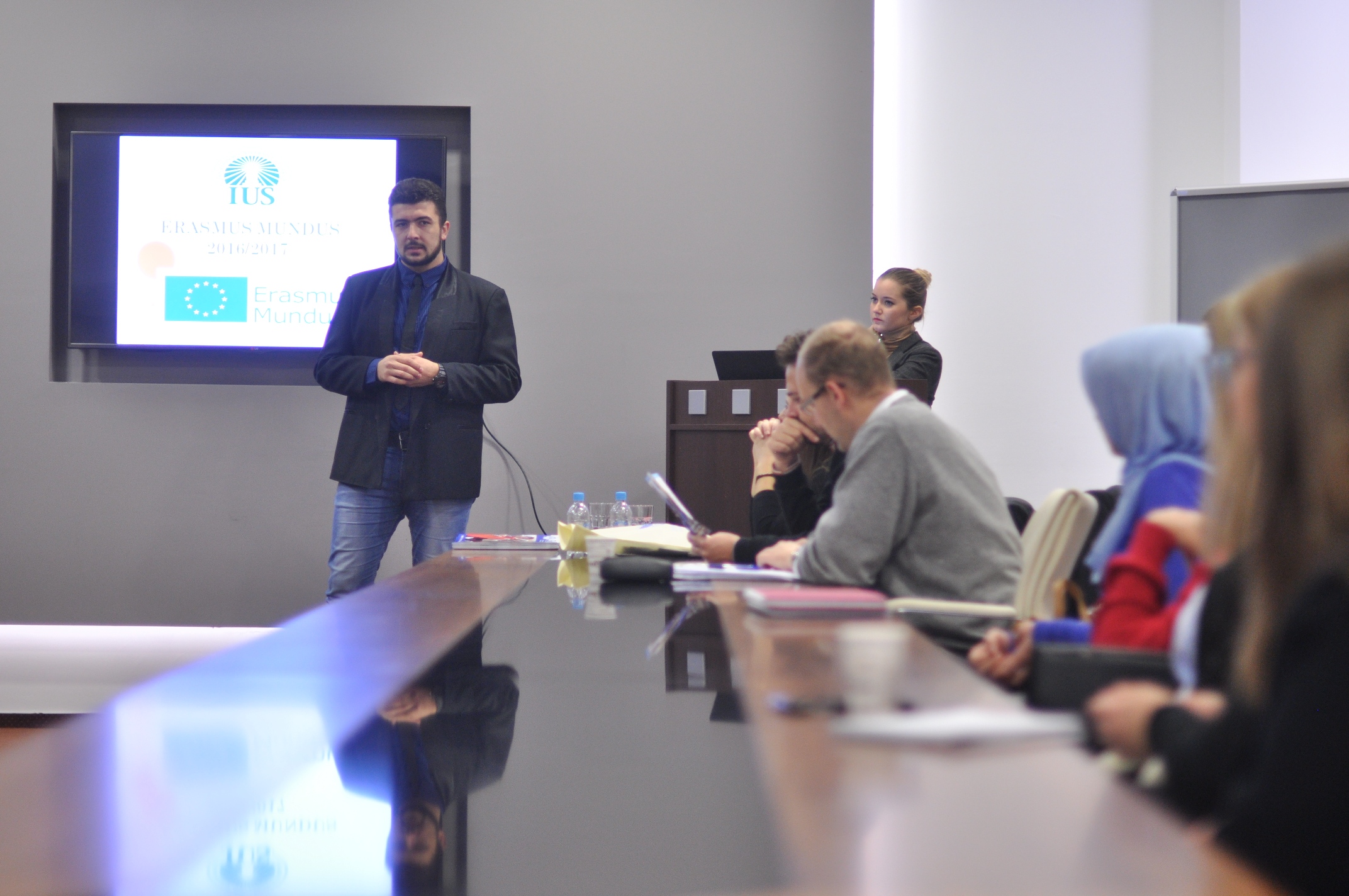 Ismail Šehić participated over the past few years in more than 50 projects, trainings and exchange programs within Erasmus+ program, and shared his experience with the audience. During the lecture, they described the application process for Erasmus Mundus exchange to students and academic staff of the IUS. The most common preconceptions that students have on the exchanges are: "It is not for me, studying abroad is more difficult than here", "It costs too much, I probably will not get a scholarship," and "I'll lose my scholarship that I have now." These misconceptions are disproved during the presentation and students listened to a lecture with great interest.