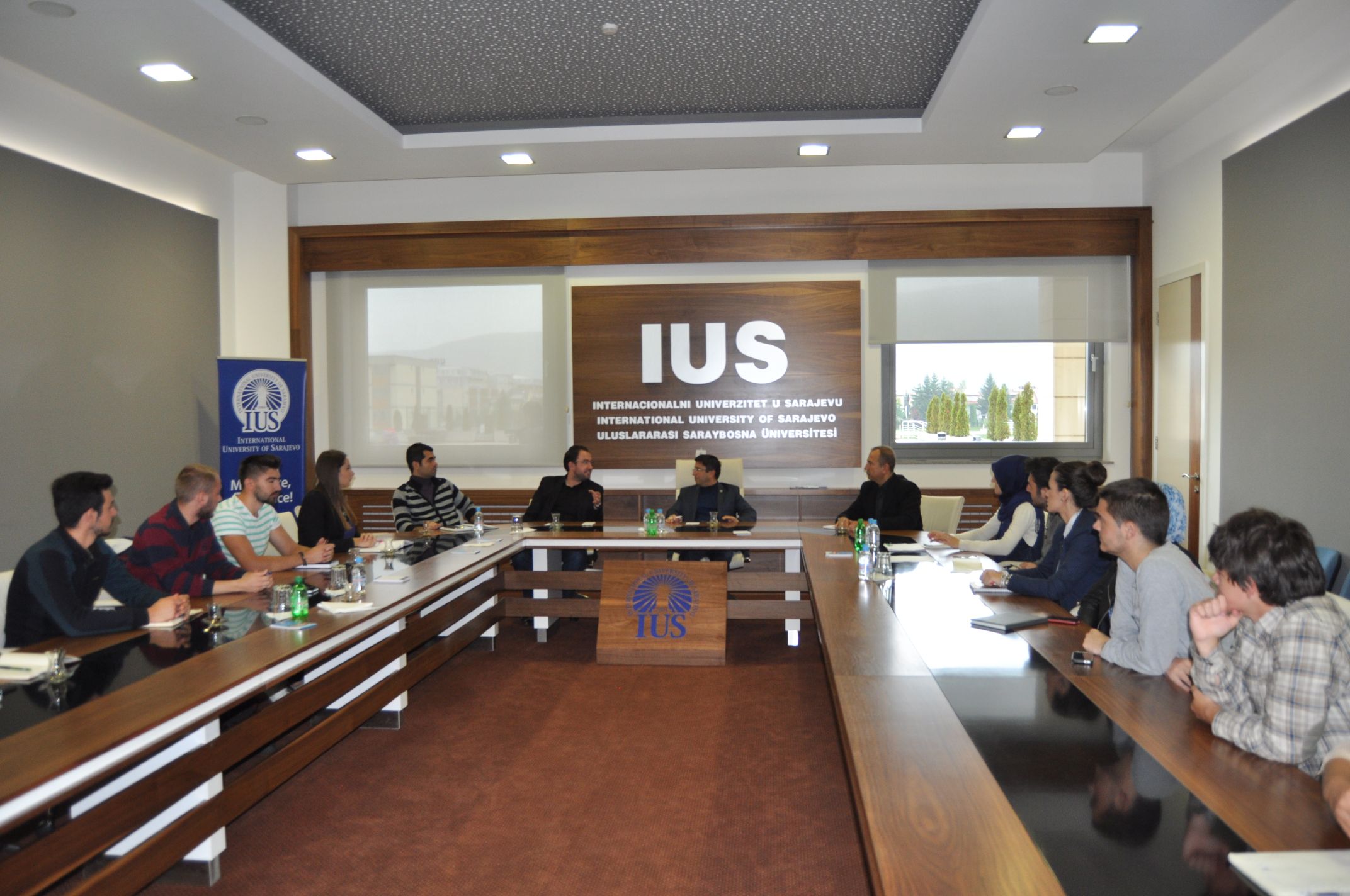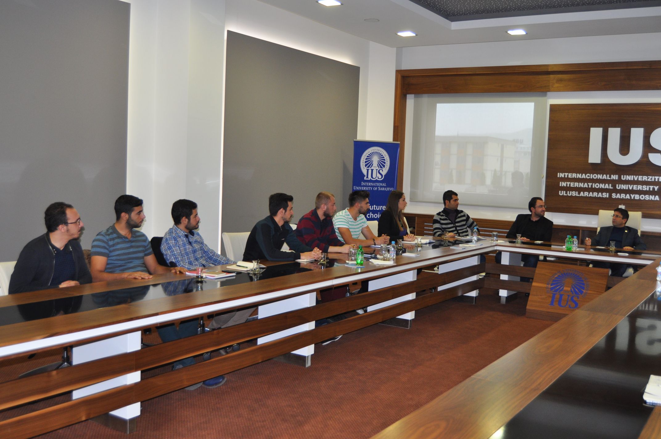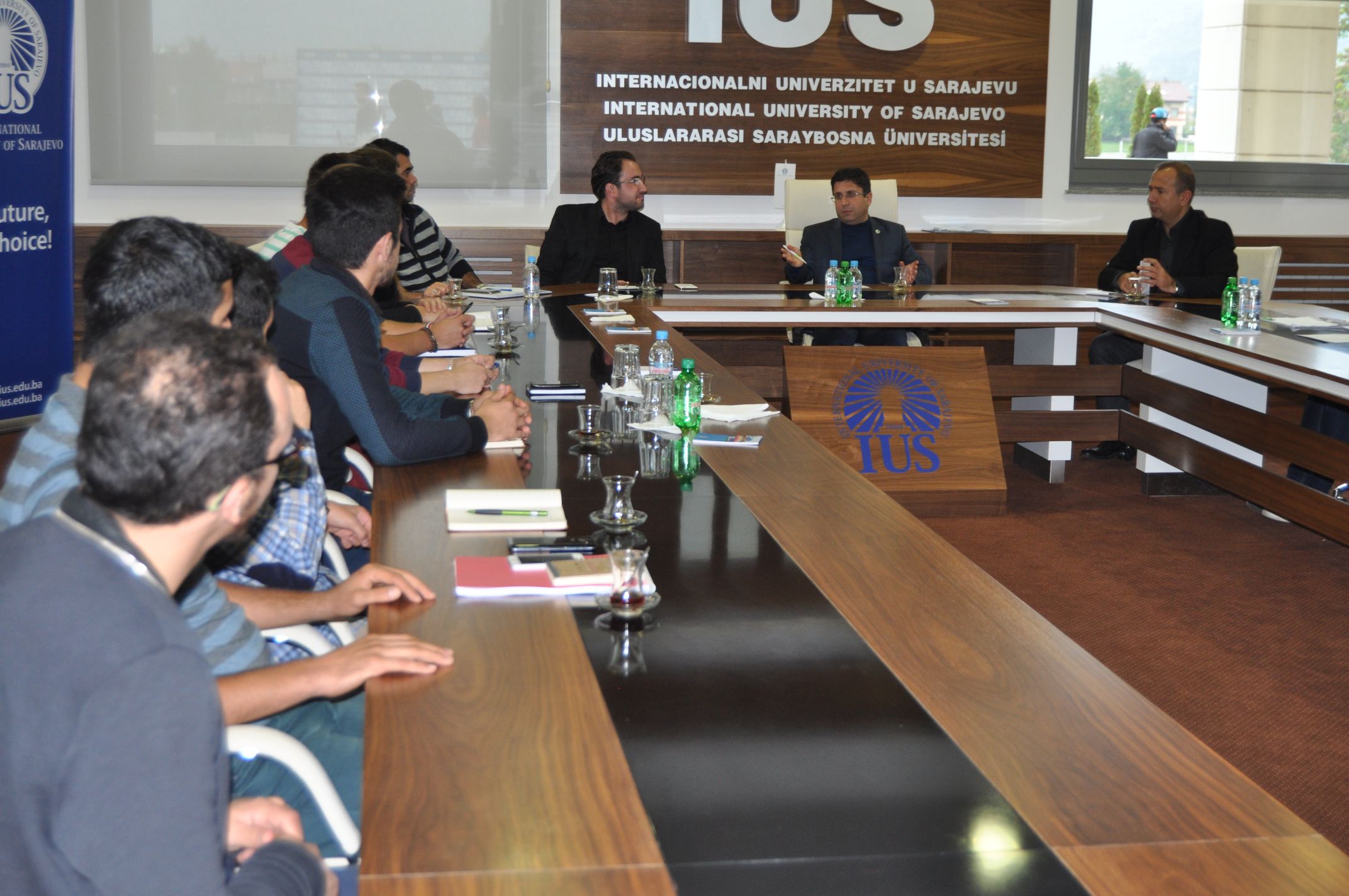 On October, 14th 2015, the first meeting between SPIUS (Student Parliament of IUS) and IUS Rector Prof. Dr. Yücel Oğurlu was held. Meeting was attended by the Vice-Rector for General Affairs, Assist. Prof. Dr. Muhammed Ali and Vice Rector for International Cooperation and Research, Assoc. Prof. Dr. Ali Gürsel. The audience was addressed by Nedžla Greda, president of SPIUS with clear objectives of this year's work of the parliament. At the begining, SPIUS has outlined its primary suggestions on an internship, and pointed out the problem of scheduling classes. Representatives of SPIUS think that it is limited to students the possibility of practical training, in the form of intership, and proposed to the Rector to enter into contracts with leading companies in Bosnia and Herzegovina, Turkey and other countries, so that our students can easily choose the company they want to work, and where they can acquire their first working experience. The Rector Oğurlu stated that the idea is taken into consideration, and he was very happy, realizing that students eager for new knowledge and training.